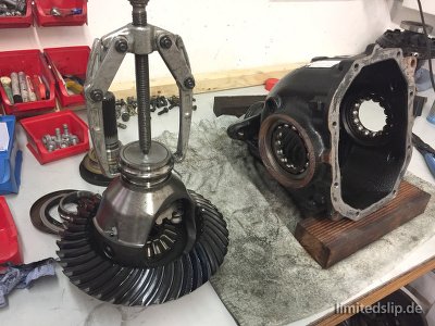 Bei den Achsgetrieben der neueren BMW Fahrzeuge sind die Tellerräder nicht mehr wie bisher verschraubt sondern mit einer umlaufenden Schweissnaht versehen. Dies gestaltet den Umbau erheblich aufwändiger. Einen kleinen Einblick in die dafür nötigen Arbeitsschritte soll die folgende Umbaudokumentation geben, diese ist aber (ganz bewusst) nicht vollständig und ich werde auch keine Fragen zu weiteren Umbaudetails beanworten. Dieser Umbau ist definitiv kein "do it yourself" Thema und man sollte sich dafür in jedem Falle an einen Achsgetriebebauer seinen Vertrauens wenden! |